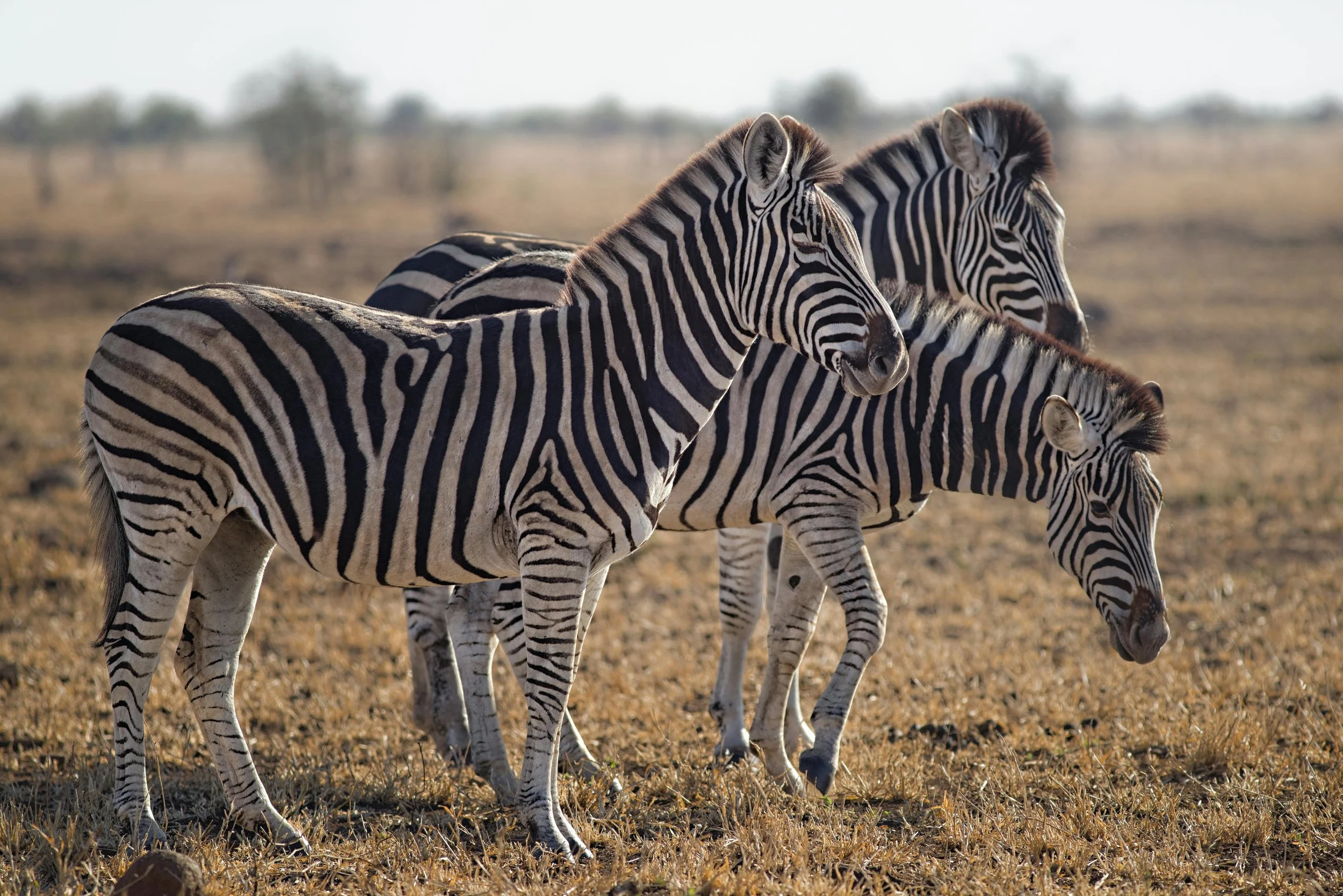 Three zebras standing together